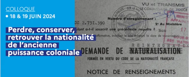 Colloque "Perdre, conserver, retrouver la nationalité de l'ancienne puissance coloniale : perspectives comparatives des années 1945 à nos jours" from 06-18-2024 to 06-19-2024 Zoom sur l'image