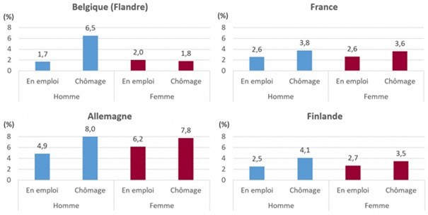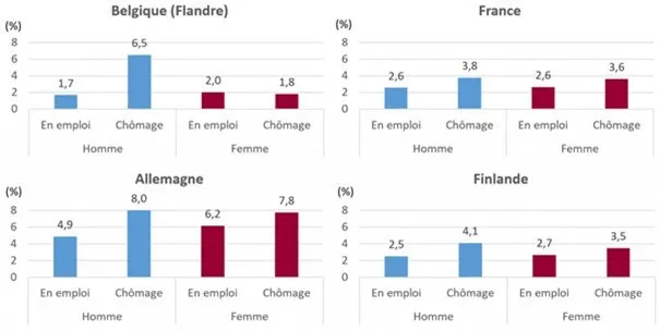 Source : Anne Solaz, Marika Jalovaara, Michaela Kreyenfeld et al., 2020, "Unemployment and separation: Evidence from five European countries", Journal of Family Research 32: 145–176