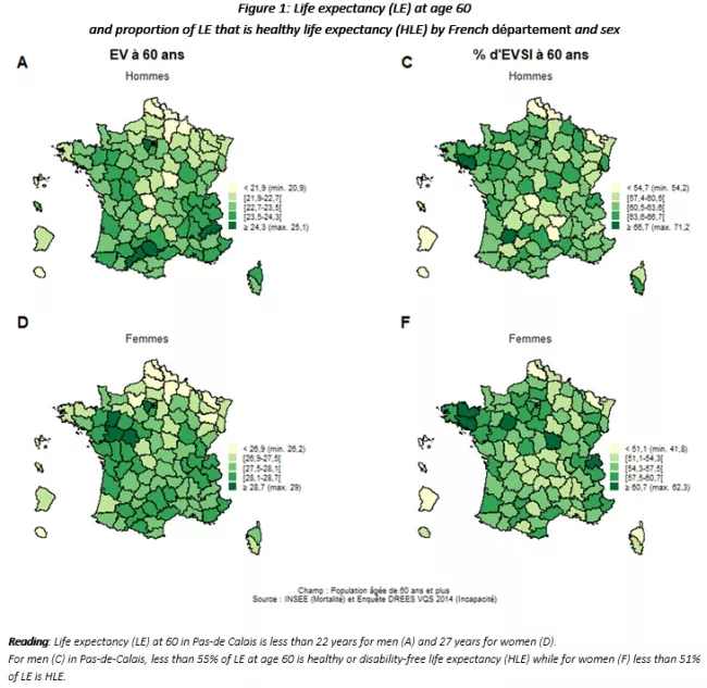 For more information and a comparison of disability-free life expectancy levels across départements, see:
