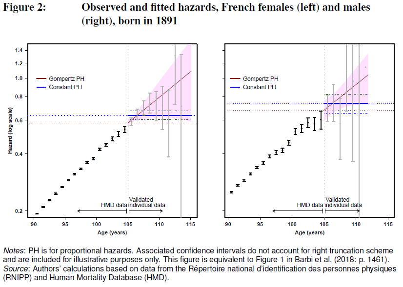 The new study published in Demographic Research used rich, exceptionally reliable data from IDL (see box) to replicate the 2018 Italian study for the French population. It does not confirm the Italian findings; on the contrary, it suggests an increase in mortality rates after 105 years of age and finds nothing to indicate the existence of a mortality plateau. The authors confirm a significant disadvantage for men with regard to mortality but find no birthyear effect on the results (Figure 2). They therefore call for pursuing data collection, to provide material for later studies, and avoiding all hasty conclusions about mortality at extreme ages.
