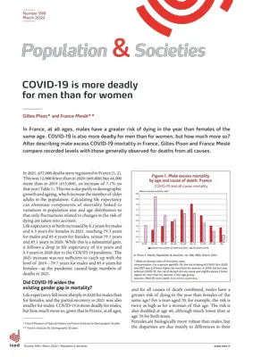 In France, at all ages, males have a greater risk of dying in the year than females of the same age. COVID-19 is also more deadly for men than for women, but how much more so? After describing male excess COVID-19 mortality in France, Gilles Pison and France Meslé compare recorded levels with those generally observed for deaths from all causes.