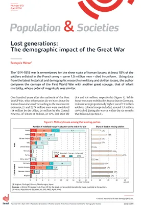 At the end of the Great War, the cohort of men born in 1894 was aged 25. Half of the men in this cohort had already been struck down by two major killers: infant and childhood diseases, followed by war. Their life expectancy,already low in peacetime (48 years) was shortened by 11 years. War losses among other cohorts depended on age at mobilization and duration of exposure. The conflict left half a million young war widows (aged below 45) and a million fatherless children. More than a million children were never born, and in 1939 France became the world's oldest country, before the baby-boom turned the situation around.