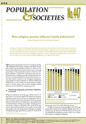 The more frequent attenders, now a small minority, remain more strongly attached to marriage and less often experience several successive unions. They also have more children: among women ever in union born in 1960, more frequent attenders have 0.6 children more than the others. Women practising a religion other than Catholicism, notably Muslim women,are not responsible for the whole of this difference, since the more frequently practising Catholics have 0.5 more children than the orthers.