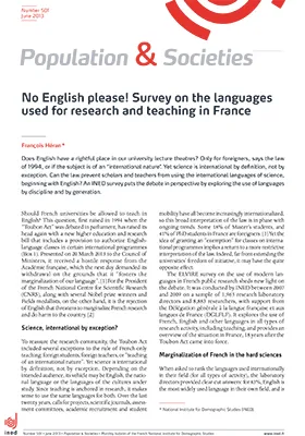 A survey of public-sector researchers and academics shows that English is used almost exclusively as the international language of dialogue in the hard sciences, and is also well-established in the humanities and social sciences. English is also the language of choice for publications, meetings held in France and websites. A quarter of the surveyed researchers and academics had taught a class in English during the year. The Toubon Act of 1994 protects consumers and employees, but has not held back the expansion of English as the international language of communication in science.