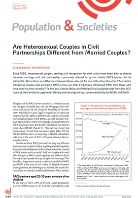they were also open to different-sex couples. Since then, they have proved increasingly popular. By 2010, the initialfigure of around 20,000 new PACS unions per year had risen to more than 205,000, most of these contracted by different-sex couples. So is there any difference between those who have optedfor marriage since 1999 and those who have chosen to become PACS partners? While not diametrically opposed,the two groups do have several distinguishing features.