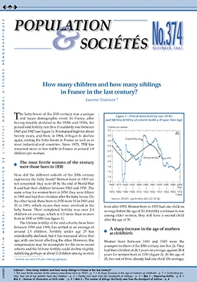 The baby-boom of the 20th century was a unique and major demographic event. In France, after having steadily declined in the 1920s and 1930s, the period total fertility rate suddenly rose between 1945 and 1947. It remained high for about twenty years, and then, in 1964, it began to decline again, ending the baby-boom in France, as well as in most industrilized countries. Since 1975, TFR has remained more or less stable in France at around 1,8 children per woman.