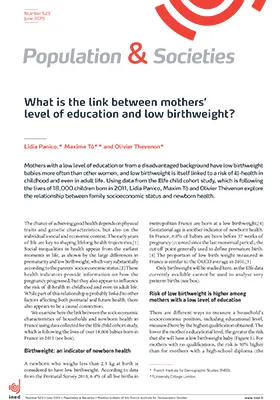 The lower a mother’s educational level, the higher the risk that she will have a low birthweight baby (below 2.5kg). The risk is 50% higher for women with no qualifications than for women with a highschool diploma. Differences by educational level narrow slightly when household income and other factors such as birth order, mother’s age and parents’ height are taken into account, but they do not disappear. Smoking and alcohol consumption during pregnancy appear to play a role, partially explaining the higher proportion of low birthweight babies born to the least educated mothers. The variations in the risk of low birthweight by socioeconomic status are similar in France and the United Kingdom.