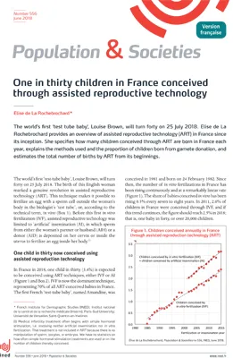 In France, one child in thirty is now being conceived through one of two methods of assisted reproductive technology (ART), either in vitro fertilization (IVF) or artificial insemination (AI). One baby in forty in that country is born using IVF. This share has been growing at a linear rate for over three decades. Altogether, 300,000 children were conceived in France by way of IVF from 1981 to late 2014. If this trend continues, the total will stand at 400,000 children by the end of 2019.