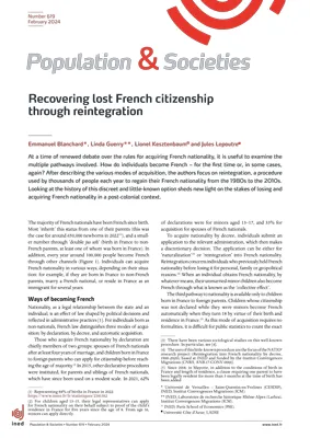 The uses of this little-known procedure are the focus of the NATIO2 research project (Reintegration into French nationality by decree, 1960-2020), based at INED and funded by the Institut Convergences Migrations (CNRS, ANR-17-CONV-0001).