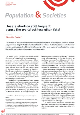 The frequency of induced abortions fell worldwide in the 1990s, from 35 abortions per 1,000 women of childbearing age (15-44 years) in 1995 to 29 per 1,000 in 2003. But it stabilized in the 2000s (28per 1,000 in 2008) as the spread of contraceptive use slowed down in developing countries. The proportion of unsafe abortions, defined by the WHO as abortions "performed by persons lacking the necessary skills or in an environment not in conformity with minimal medical standards, or both,"did not fall, however, and still represents nearly half of all elective terminations (49% in 2008). Paradoxically, abortion-related mortality has been falling steadily for two decades, from 60 maternal deaths per 100,000 live births in 1990 to 40 per100,000 in 2008. The drop has been particularly pronounced in Latin America, even though abortion is still strongly condemned there. This development is linked in part to the spread of medical abortion in countries where it nonetheless remains illegal. Today, illegal no longer systematically means unsafe.