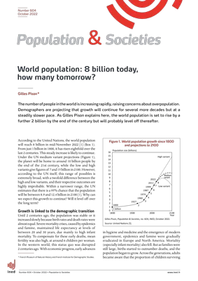 The number of people in the world is increasing rapidly, raising concerns about overpopulation. Demographers are projecting that growth will continue for several more decades but at a steadily slower pace. As Gilles Pison explains here, the world population is set to rise by a further 2 billion by the end of the century but will probably level off thereafter.