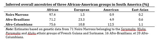 The genetic history of South America’s Afro-American populations: the emblematic case of the “Noirs Marrons” [Maroons, descendants of runaway slaves from Africa] in French Guiana and Suriname