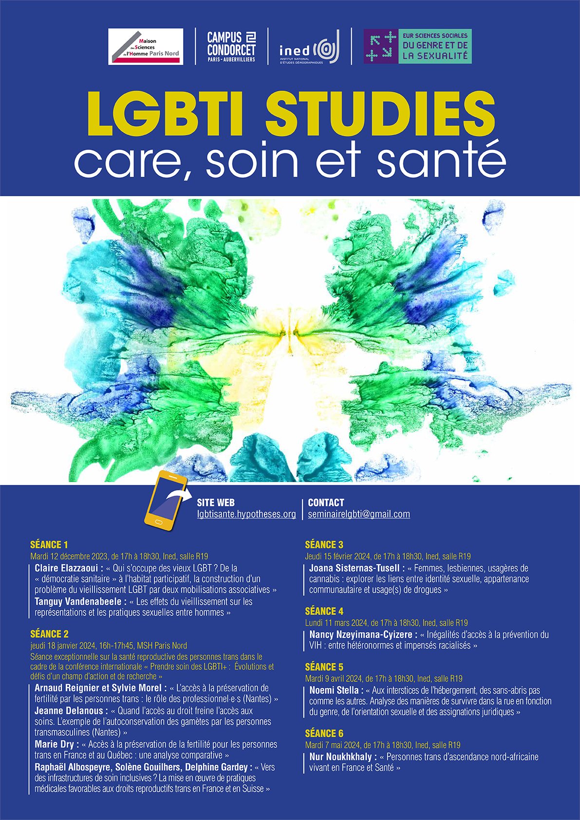 LGBTI studies care, soin et santé - séance 1, 2023 Séminaires et colloques 12/12/2023 l'Ined, salle R19, de 17h à 18h30' Ce séminaire ambitionne de renouveler les approches sur les questions de santé LGBT, en décloisonnant les objets d’études souvent polarisés par les approches et les méthodes de la santé publique.Programme du 12/12/2023Claire Elazzaoui : "Qui s'occupe des vieux LGBT?"Tanguy Vandenabeele : "Les effets du vieillissements sur les représentations et les pratiques sexuelles entre hommes"Zoom sur l'image Programme Programme 2023-2024