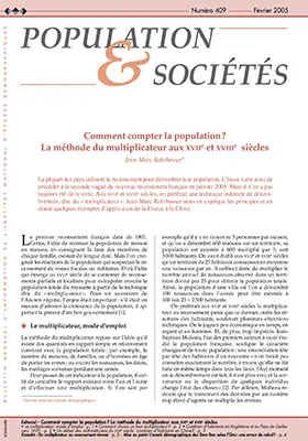 La plupart des pays utilisent le recensement pour dénombrer leur population. L'Insee vient ainsi de procéder à la seconde vague du nouveau recensement français en janvier 2005. Mais il n'en a pas toujours été de la sorte. Aux XVIIe et XVIIIe siècles, on préférait une technique indirecte de dénombrement, dite du « multiplicateur ». Jean-Marc Rohrbasser nous en explique les principes et en donne quelques exemples d'application de la France à la Chine.