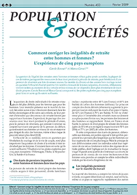 La moindre présence des femmes sur le marché du travail ne leur permet d'atteindre que des niveaux de retraite limités par rapport aux hommes. L'évolution des comportements conjugaux, entre autres, conduira un nombre croissant d'entre elles à vivre isolées à la retraite, sans toutefois être veuves. Leur niveau de vie dépendra alors plus étroitement de leurs droits propres. Afin de corriger les inégalités de retraite entre les hommes et les femmes, cinq pays européens - l'Allemagne, l'Italie, le Royaume Uni, la Suède et la France - semblent limiter les conditions d'octroi de la réversion et développer parallèlement des dispositifs visant au renforcement des droits propres des femmes : le partage des droits à la retraite au sein des couples (le splitting) mais surtout la compensation à la retraite de l'impact des enfants sur les carrières.