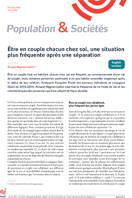 En France, être en couple sans vivre ensemble correspond le plus souvent à une étape du processus de formation d’une union plus qu’à un rejet de la vie de couple cohabitant, en particulier chez les jeunes. En revanche, pour les personnes séparées ayant déjà des enfants, conserver chacun son propre logement s’apparente davantage à une « alternative » au couple cohabitant, en permettant d’accéder à une nouvelle vie amoureuse mais desserrée des contraintes liées à la vie commune et garante de l’autonomie de chacun des partenaires.