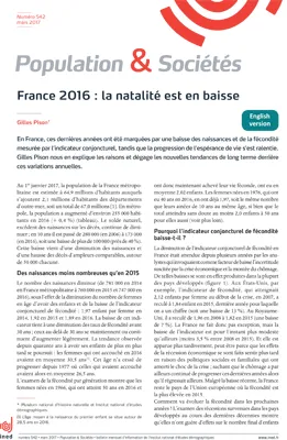 Le nombre des naissances a baissé de 4,5 % en France entre 2014 et 2016, sous l’effet conjoint de la diminution du nombre de femmes en âge d’avoir des enfants et de la baisse de l’indicateur conjoncturel de fécondité : 1,97 enfant par femme en 2014, 1,89 en 2016. De telles baisses se sont aussi produites dans la plupart des pays développés, mais celle en France est plus modeste et plus tardive qu’ailleurs en raison vraisemblablement des politiques sociales et familiales qui ont amorti le choc de la crise.