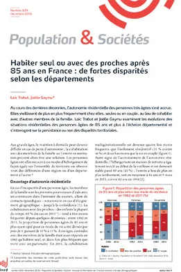 Au cours des dernières décennies, l’autonomie résidentielle des personnes très âgées s’est accrue. Elles vieillissent de plus en plus fréquemment chez elles, seules ou en couple, au lieu de cohabiter avec d’autres membres de la famille. Loïc Trabut et Joëlle Gaymu examinent les évolutions des situations résidentielles des personnes âgées de 85 ans et plus à l’échelon départemental et s’interrogent sur la persistance ou non des disparités territoriales.