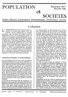 L'adoption d'enfants mineurs n'est autorisée en France que depuis 1923. Le nombre annuel d'adoption, qui avoisinait le millier avant la deuxième Guerre, est actuellement proche de 5000 et il est appelé vraisemblablement à augmenter dans l'avenir.