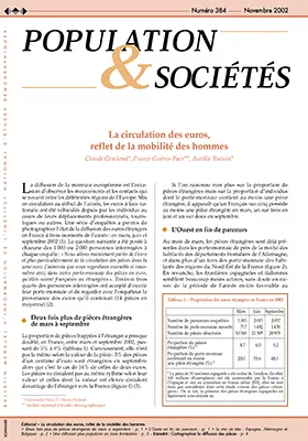La diffusion de la monnaie européenne est l'occasion d'observer les mouvements et les contacts qui se nouent entre les différentes régions de l'Europe. Mis en circulation au début de l'année, les euros à face nationale ont été véhiculés depuis par les individus au cours de leurs déplacements professionnels, touristiques ou autres. Une série d'enquêtes a permis de photographier l'état de la diffusion des euros étrangers en France à trois moments de l'année : en mars, juin et septembre 2002 (1). La question suivante a été posée à chacune des 1 000 ou 2 000 personnes interrogées à chaque enquête : « Nous allons maintenant parler de l'euro et plus particulièrement de la circulation des pièces dans la zone euro. J'aimerais que nous regardions ensemble si vous-même avez dans votre porte-monnaie des pièces en euro, qu'elles soient françaises ou étrangères ». Environ trois quarts des personnes interrogées ont accepté d'ouvrir leur porte-monnaie et de regarder avec l'enquêteur la provenance des euros qu'il contenait (14 pièces en moyenne) (2).