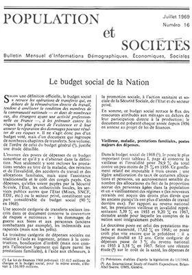 Selon une définition officielle, le budget social "retrace les opérations de transfets qui, en dehors de la rémunération directe du travail, tendent à améliorer la condition des membres de la communauté nationale..."