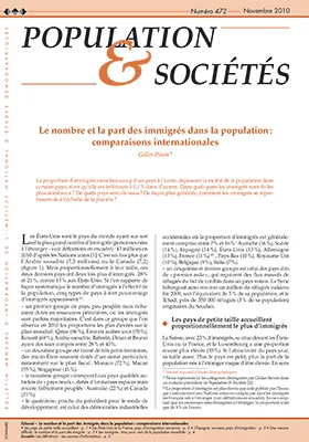 Les États-Unis sont le pays du monde ayant sur son sol le plus grand nombre d'immigrés (personnes nées à l'étranger) : 43 millions. C'est six fois plus que l'Arabie saoudite (7,3 millions) ou le Canada (7,2). Mais proportionnellement à leur taille, ces deux derniers pays ont deux fois plus d'immigrés : 28 % et 21 %, contre 13 % aux États-Unis. Les pays de petite taille accueillent proportionnellement le plus d'immigrés. La Suisse, avec 23 % d'immigrés, se situe devant les États-Unis, et le Luxembourg a une proportion encore plus élevée (35 %). Dans les vieux pays d'immigration comme les États-Unis ou la France, la population immigrée s'est constituée progressivement. Le flux d'entrée, même modeste à certaines périodes, comme en France aujourd'hui, s'est maintenu de façon presque ininterrompue sur plus d'un siècle. Dans les pays d'immigration récente comme l'Espagne, la population immigrée s'est en revanche constituée très récemment avec des flux massifs.