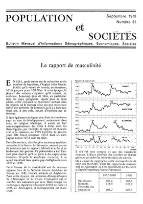 En 1961, l'Anglais J. Graunt établit qu'ilvenait au monde, en moyenne, 105,8 garçons pour 100 filles. A cette époque, la plupart des auteurs pensaient au contraire qu'il naissait beaucoup plus de filles, en particulier dans les pays polygames.