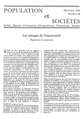 Un rapport du MIT et des membres du Club de Rome vient d'être publié. Son objet est de démontrer, au moyen d'un modèle mathématique, que la croissance exponentielle des populations et de la production est impossible dans un monde fini, et de calculer les délais avant la catastrophe.