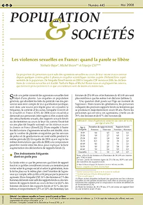 L'enquête Contexte de la sexualité en France (CSF) de 2006 a demandé aux personnes interrogées si elles avaient subi des rapports sexuels forcés ou des tentatives au cours de leur vie, comme l'avait fait en 2000 l'enquête nationale sur les violences sexuelles envers les femmes en France (Enveff). D'une enquête à l'autre, les déclarations d'agressions sexuelles ont doublé, 16% des femmes et 5 % des hommes déclarant en 2006 avoir subi des rapports forcés ou des tentatives de rapports forcés au cours de leur vie. L'augmentation des déclarations ne provient pas d'une fréquence accrue des agressions, mais d'une plus grande propension à rapporter des événements de violence dans une enquête scientifique, liée à l'abaissement du seuil de rejet des violences.
