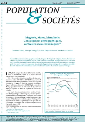 Le Maghreb compte 76 millions d'habitants en 2008, dont 35 en Algérie, 31 au Maroc et 10 en Tunisie. Bien que les revenus et les conditions de vie y soient différents, les taux de croissance démographiques diminuent de façon parallèle depuis les années 1980. Les décalages entre les taux de mortalité sont de moins en moins visibles pendant que la fécondité s'est alignée partout sur un niveau bas. On retrouve ces contrastes à l'intérieur du Maroc, où les disparités socio-économiques entre villes et campagnes, accrues par le phénomène d'exode rural, restent importantes. Les revenus et le niveau d'instruction y varient encore du simple au double, alors que les comportements démographiques convergent malgré un accès aux structures de santé encore très inégal. La population de Marrakech elle-même confirme ces analyses, à travers une étude détaillée de ses quartiers.