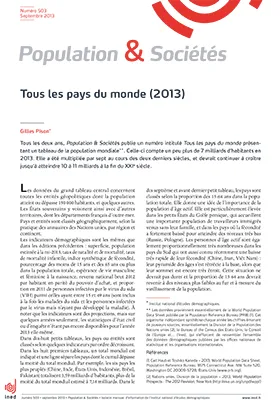 Tous les deux ans, Population & Sociétés publie un numéro intitulé Tous les pays du monde présentant un tableau de la population mondiale. Celle-ci compte un peu plus de 7 milliards d'habitants en 2013. Elle a été multipliée par sept au cours des deux derniers siècles, et devrait continuer à croître jusqu'à atteindre 10 à 11 milliards à la fin du XXIe siècle.