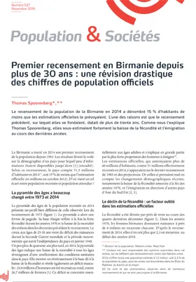 Selon les chiffres officiels, la Birmanie comptait près de 61 millions d’habitants en 2012. Ces chiffres se basaient sur des projections de population menées à partir du dernier recensement conduit en 1983. En avril 2014, la Birmanie a mené un nouveau recensement permettant de lever le voile sur les changements démographiques récents dans le pays. Confirmant le comportement reproductif distinct des femmes birmanes et l’importance des migrations internationales, ces nouvelles données révèlent une population 15 % moins nombreuse que celle officiellement estimée jusqu’alors.