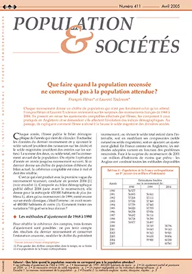 Chaque recensement donne un chiffre de population qui n'est pas forcément celui qu'on attend. François Héran et Laurent Toulemon reviennent sur les surprises des recensements français de 1968 à 2004. Ils passent en revue les ajustements comptables effectués par l'Insee, les comparent à ceux pratiqués en Angleterre et se demandent s'ils affectent l'évolution des indices démographiques. Au passage, ils expliquent comment l'Insee a révisé à la hausse le solde migratoire des dernières années.