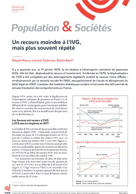 On compte en 2011 près de 210 000 interruptions volontaires de grossesse (IVG), ce qui correspond à 0,53 IVG par femme au cours de la vie. Après avoir diminué de 1975 à 1995, le recours à l’IVG a légèrement augmenté avant de se stabiliser à la fin des années 2000. L’âge moyen à l’IVG est stable, à 27,5 ans. La part des IVG répétées augmente régulièrement. Un tiers des femmes (33 %) ont recours au moins une fois à l’IVG au cours de leur vie, dont 10 % deux fois et 4 % trois fois ou davantage. Avec l’augmentation de la part des IVG médicamenteuses, la durée moyenne de grossesse lors de l’IVG diminue : 6,4 semaines de grossesse en 2011, contre 7,1 en 2002.