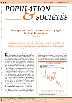 Jusque dans les années 1970, une épidémie de grippe faisait directement de 10 000 à 20 000 morts, auxquelles il faut ajouter les décès dus aux complications de la maladie. La mise au point d'un vaccin efficace, constamment remanié en fonction des mutations du virus, a permis de diviser la mortalité par dix en France comme dans les autres pays industriels en 40 ans. Ce succès a été renforcé par la diffusion gratuite du vaccin auprès des personnes âgées, particulièrement sujettes aux complications létales. Le xxe siècle a connu trois grandes pandémies, liées à des recombinaisons majeures du virus : la grippe espagnole de 1918-1919, la grippe asiatique de 1957-1958 et la grippe de Hong Kong de 1968-1969. Les jeunes enfants et les jeunes adultes en ont particulièrement souffert. C'est aussi le cas de l'épidémie de grippe A (H1N1) de 2009-2010 pour laquelle deux personnes décédées sur trois avaient moins de 65 ans mais, fort heureusement, l'épidémie s'est révélée beaucoup moins grave qu'annoncée (312 décès).
