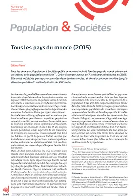 en_breadcrumb_see_breadcrumb Accueil Publications Tous les pays du monde (2015) Population & Sociétés Partager & Imprimer Tous les pays du monde (2015) Gilles Pison Collection : Population & Sociétés n°525, septembre 2015 Télécharger le Pdf de l'article AuteursGilles Pison