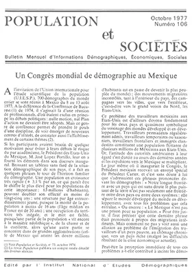 A l'invitation de l'Union internationale pour l'étude scientifique de la population (UIESP), 700 démographes du monde entier se sont réunis à Mexico du 8 au 13 août 1977.