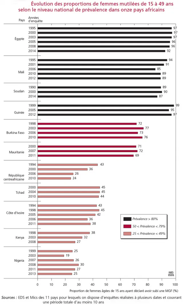 Source : Armelle Andro, Marie Lesclingand, 2016, Les mutilations génitales féminines. État des lieux et des connaissances, Ined, Population, 71 (2)