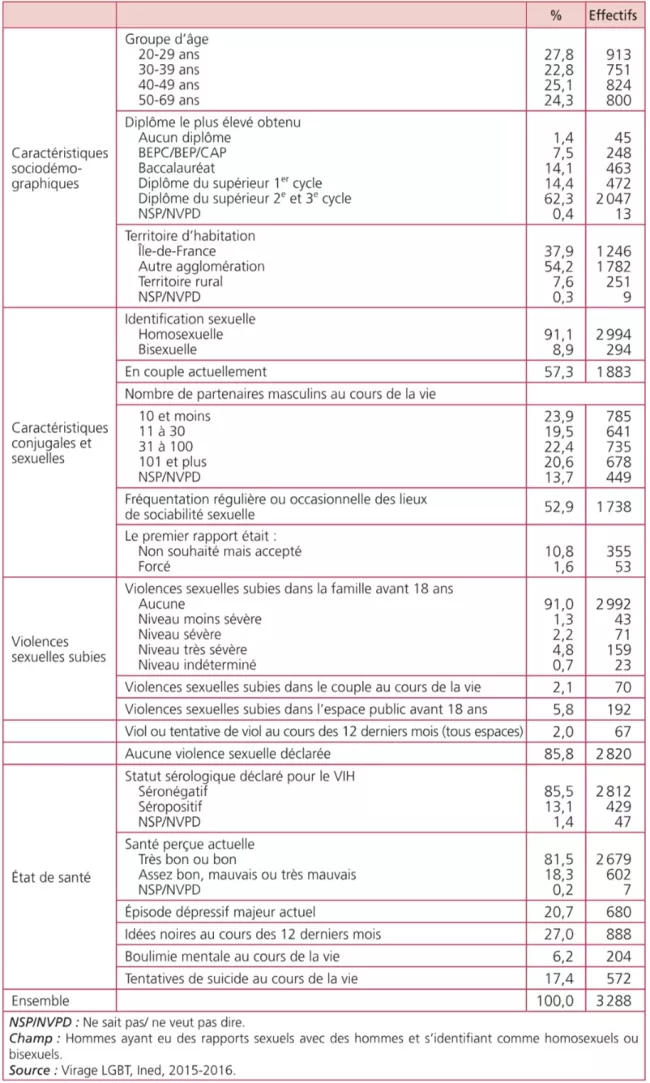 Tableau 1. Caractéristiques sociodémographiques, de santé et violences sexuelles des gays et bisexuels en 2015-2016